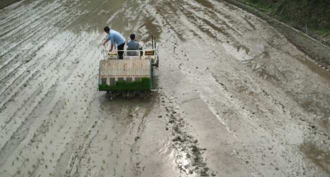 本网江西讯(赖晓葳)眼下,正是春耕春种的关键时节,江西安远县塘村乡种植户趁着晴好天气全力推进早稻机插工作,田间地头处处呈现一派繁忙春耕景象。