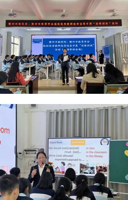 城乡联动展风采,异构课堂启新思。此次活动聚焦九年级英语中考复习话题《校园生活》,通过“同课异构”课堂展示、专题研讨及专家讲座,探索英语话题复习的创新策略,为乡村教育高质量发展注入新动能。活动以“同课异构”为核心,由安远县东江实验学校谢观娣老师与赣州市教科所选派赣州三中的优秀教师陈芸同台执教。两位教师围绕《校园生活》复习主题,呈现了风格迥异的教学设计。谢观娣老师以“情境浸润”为特色,通过校园场景模拟、小组协作任务等环节,激发学生语言应用能力。