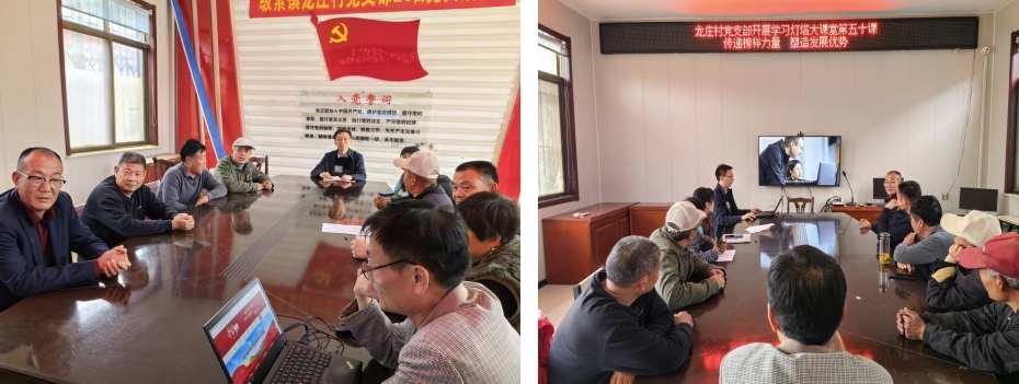 规范组织生活,凝聚党建合力:以党支部规范化建设为抓手,严格落实“三会一课”、主题党日等组织生活制度,常态化组织党员观看“灯塔大课堂”、开展支部书记讲党课等活动,宣传党的路线方针和上级党组织的决策部署,切实提高支部党员的政治理论水平和党性修养,充分激发基层党组织的战斗堡垒作用和党员的先锋模范作用,为龙庄村乡村振兴之路提供坚强的组织保障。
