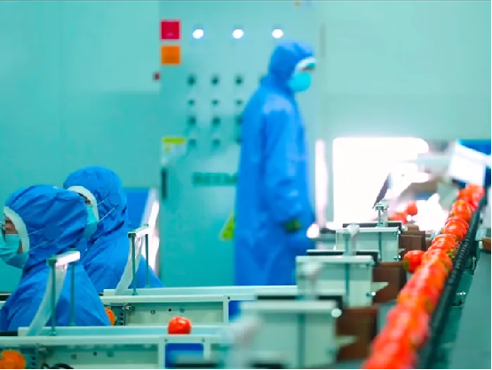 为了进一步延伸柿食产业链,2024年,中国三星助力湾里村建造了一座现代化的未来工厂。工厂建成投产那天,村里人都来参观。看着全自动削皮去蒂机每分钟能高效处理数十个柿子,看着智能化控温烘制系统把柿饼晾晒时间大幅缩短,村里的老人高兴地摸着机器说:“以前做柿饼,要守着晒架等上许久,现在机器一响,就能出好货。”这一场景,正是中国三星对湾里村帮扶模式从“多产融合”向发展“农业新质生产力”升级的生动体现。