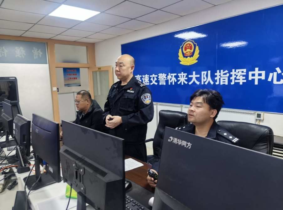指挥中心内,怀来大队教导员刘浩运筹帷幄,指挥值班人员,用智慧科技织就立体防控网络;滚滚车流中,民辅警屹立坚守,以挺拔身姿筑起疏堵保畅的钢铁长城;服务一线,交警们俯身相助,深夜清障、暖心帮扶,将“人民公安为人民”的庄重誓言,化作一次次贴心的守护和时时刻刻温暖地坚守。
