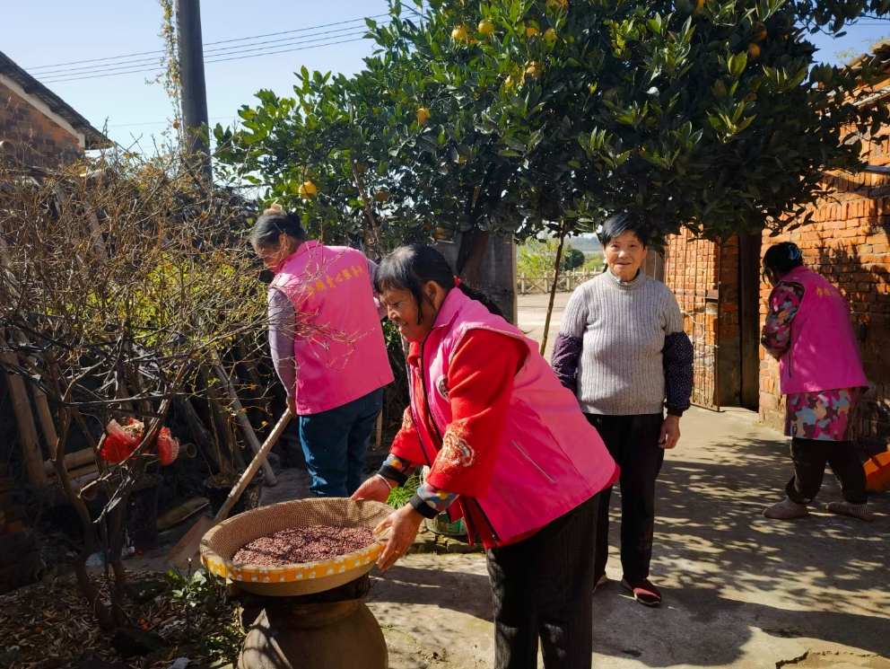 图为巾帼服务队为幽兰村的独居老人整理门前小院
