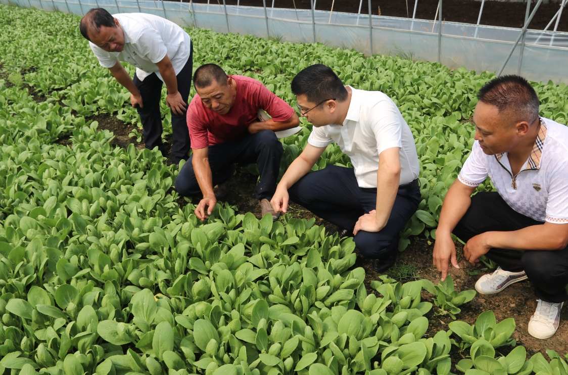 图为幽兰镇干部正在查看群众的产业种植情况并听取产业发展服务队的意见建议