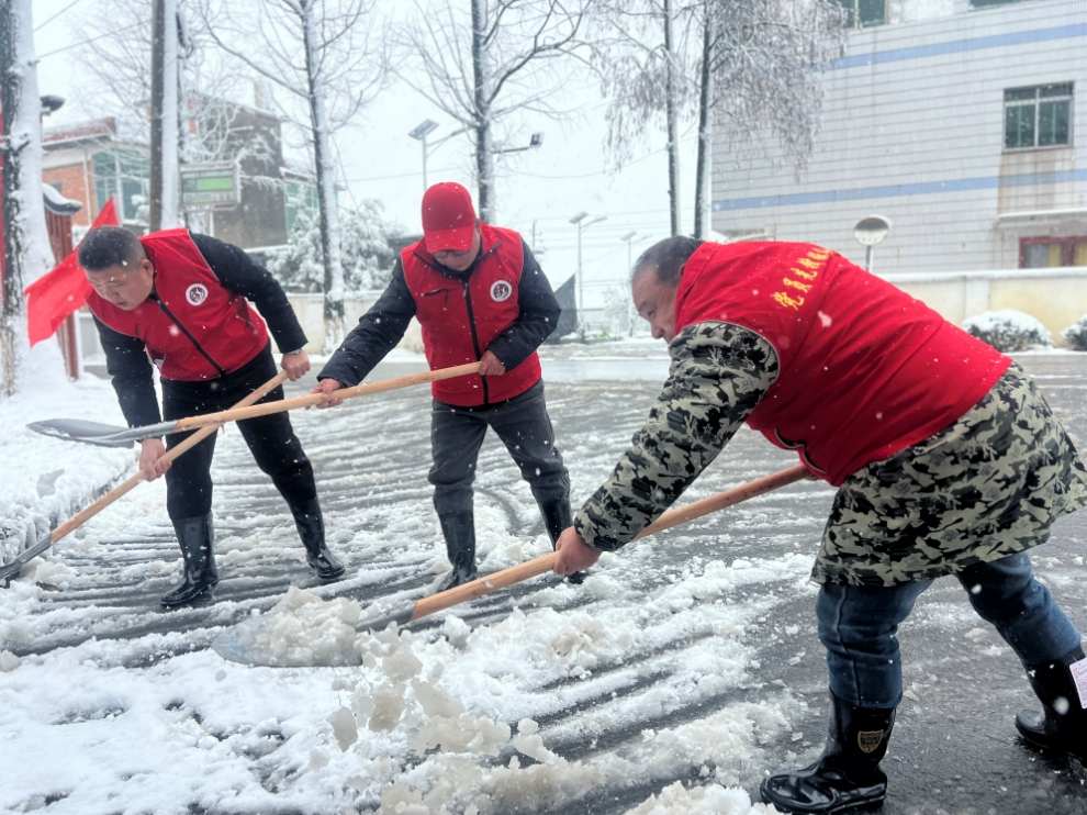 图为党员先锋服务队正在清理城区主干道路积雪,确保群众出行无阻。