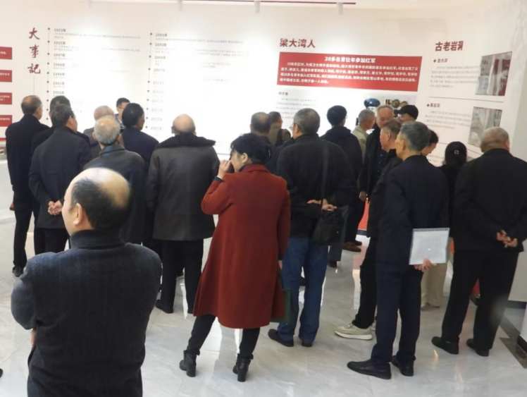 巴中化成镇党委政府,组织参观梁大湾村文化礼堂红色展览。