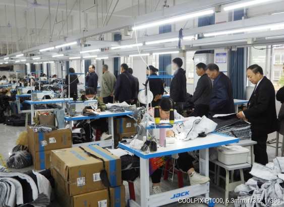 巴中化成镇党委政府,组织参观赵家湾村引进浙商服装加工厂生产车间。
