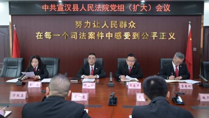 12月10日,四川省宣汉县人民法院召开党组扩大会议,专题传达学习四川省委十二届八次全会和达州市委五届十一次全会精神。