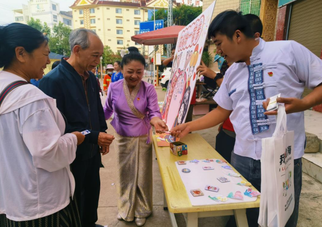 图为“银发智囊团”开展民族团结宣传互动游戏