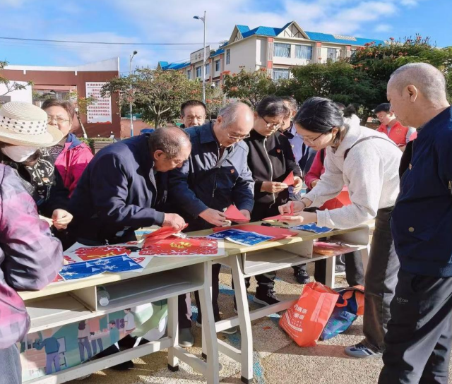 除了手工活动,“银发智囊团”还化身社区的“宣传队”和“文艺队”。普法宣传日里,有过行政工作经验的老党员张叔,用通俗易懂的语言为居民讲解民法典知识,结合真实案例剖析邻里纠纷、财产继承等常见问题,让法律知识走进千家万户;在民族团结宣传月中,智囊团策划了民俗游戏,组织居民参与其中。他们还组建了社区跳舞队,队员们身着整齐的服装,踏着欢快的节拍起舞,不仅锻炼了身体,更丰富了社区的文化生活,成为社区一道亮丽的风景线。