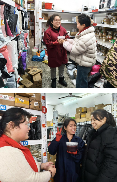 “爷爷奶奶,腊八节快乐,我们给您送腊八粥来啦!”老人们看到满是笑容的志愿者和手中热气腾腾的腊八粥,眼中满是惊喜与感动。志愿者们陪着老人聊天,听他们讲述过去的故事,关心他们的身体状况和生活需求,让老人们感受到家人般的关怀。在辖区的快递驿站,刚刚结束早高峰配送的外卖员接过志愿者递来的腊八粥感慨的说:“平时都是我们给别人送快递,今天收到社区送的腊八粥,心里特别热乎。”他们表示,这份意外的关怀让他感受到这座城市的温度。