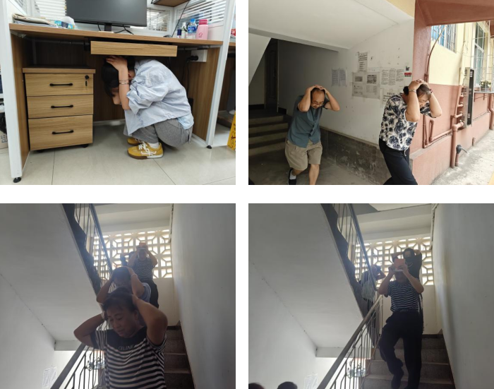 随着警报响起,演练正式启动。在场人员迅速反应,就近躲至桌下、墙角等安全区域做好紧急避险;待疏散信号发出,在各小组长有序引导下,大家弯腰护头、沿预定路线快速撤离至社区空旷安全区域,全程规范有序、无拥挤混乱。抵达集结点后,各小组迅速清点人数并上报,圆满完成模拟避险、疏散集结全流程。