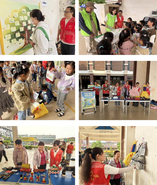 活动现场热闹有序,环境保护局工作人员向大家发放环保宣传手册,面对面讲解垃圾分类、节能减排、绿色出行等实用环保知识,引导居民和小朋友树立“保护环境,从我做起”的责任意识。现场同步设置旧物置换区、废物利用作品展示区,居民们带着闲置物品互换共享,一件件由废旧纸箱、塑料瓶改造而成的创意手工作品,生动诠释了“变废为宝、循环利用”的环保理念。