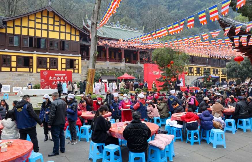 本网重庆讯(诸葛思涵)新年伊始,万象更新。2024年2月3日(农历腊月二十四),时值我国南方传统民俗节日“小年”。为了答谢社会各界人士一直以来对寺院的关心护持,缙云寺和温泉寺隆重举办感恩祈福回家团年活动,十方善信云聚一堂,礼佛祈福、欣赏演出、享用素宴,在喜庆祥和的气氛中共同度过了一个迎春纳福的吉祥日子!
