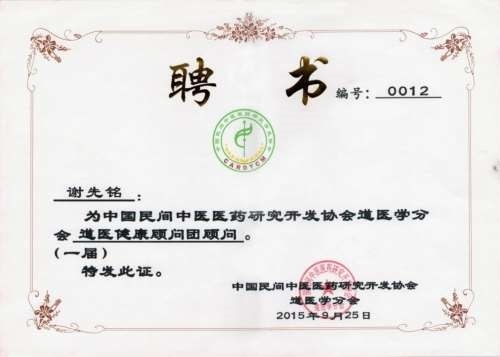 道医学分会为谢先铭医师颁发了“道医健康顾问”聘书。