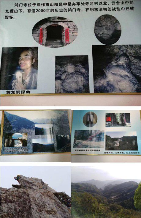 修武县东岭后之苍山,为亚洲之“亚”字的上边一横,青龙峡两边山体则构成了“亚”安左右边的两点,王屋山、神农山、清天河、静影寺等为亚洲的亚字的左边一点,大乘寺、云台山以及辉县的西莲(过去这一带都属于河内)为“亚”字右边的一点,九莲山及太行山外围之山为“亚”字的下边一横(大卧佛就镶嵌在其中),这样这里的山势地貌就构成了亚洲的“亚”字。鸿门寺后面的山体与云台山深处的大乘寺(善车寺)周边的山形地貌很好的组成了中国国名——震旦二字形成的来源。青龙峡西面的马头山及其大东河周围名圣古籍众多,其中朱华村北面的山体犹如一个大坐椅,上面山峰犹如坐着人。大东河西面的山沟中的福禄寺也叫“佛山福禄寺”。