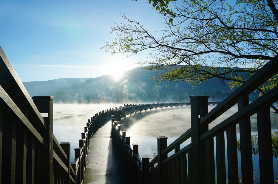 原来,黑龙潭的蜕变,正是党建引领下凝聚发展合力的生动写照。近年来,格朗和乡深入践行“党建+”模式,以组织振兴引领乡村全面振兴,依托项目建设推动旅游经济破局起势。2021年,一笔千万元的沪滇协作资金注入,激活了这片沉睡的山水。随着黑龙潭湖民族生态旅游建设项目的实施,环湖步道、景观桥、亲水平台、打卡点陆续建成,绿化美化与风貌提升同步开展,配套的文化展示体验中心也顺利落成。2023年以来,随着古茶山一二三产融合发展走向深入,乡党委提出构建“全域游”发展格局,黑龙潭乘势而上,积极培育环湖旅游业态。茶旅融合项目有序投入,现有民宿与景点焕新升级,垂钓中心、特色集市、湖畔舞台相继亮相。基础设施持续完善,为这片水域注入了源源不断的生机。