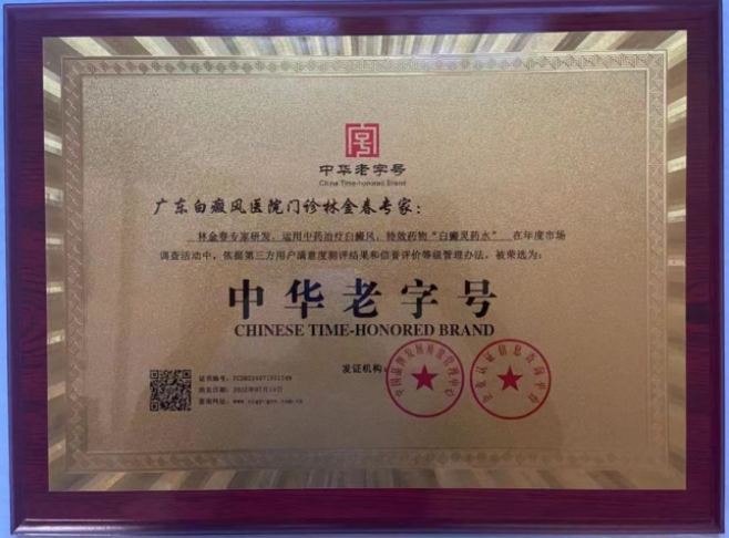 该药物直达白斑病灶,能有效促进黑色素细胞的生成与增殖,快速改善白斑症状,安全性高、疗效确切。同时,他针对患者体质差异,配伍个性化内服方剂,通过滋补肝肾、活血化瘀、祛风通络等调理方式,从根源上调节机体免疫力,修复脏腑功能,实现“外用治表、内服治本”的内外合治理想疗效,中华老字号认证的中华中医药传统文化传承创新应用的荣誉证书与牌匾!