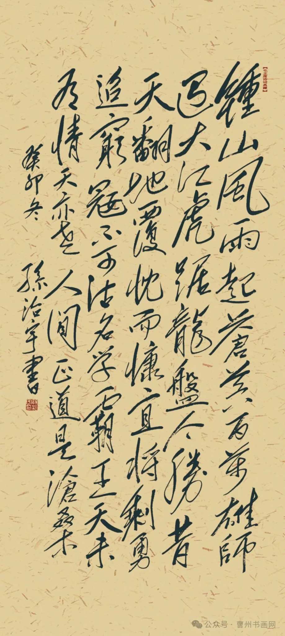 工作之外,书法是孙治宇的精神坚守。自1993 年与毛体书法结缘,三十余载他潜心钻研,从形似到神似,从笔墨技法到气韵风骨,追寻的不仅是艺术高度,更是精神共鸣。