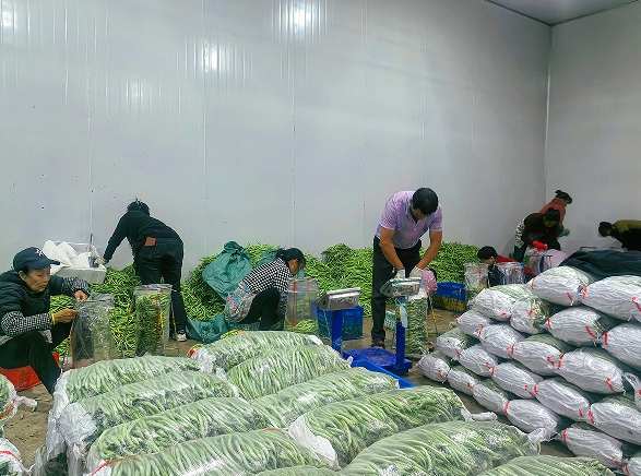 分拣车间的流水线旁,脱贫户及外来务工人员指尖翻飞,青翠的豆角迅速归类装箱,真正实现“就业顾家两相宜、务农务工双增收”的民生图景。冷链物流中心充分发挥人流密集优势,采取“党建引领、村级拓展、小组辐射”的“1+2+N”框架模式,以实体化零工市场为中心,在2个村党总支成立劳务合作社、村党支部搭建零工驿站,构建“需求摸排、技能培训、岗位匹配、权益保障”的全链条就业服务机制,采取“定向输送+弹性用工”双轨并行,既培育稳定型工人队伍20余个,又蔬菜加工、分拣装箱、物流配送等灵活就业岗位30余个,吸纳周边村寨群众就近就业800余人,实现“日结月薪”式的“务农+务工”双收入,为群众实现增收1000万元以上。