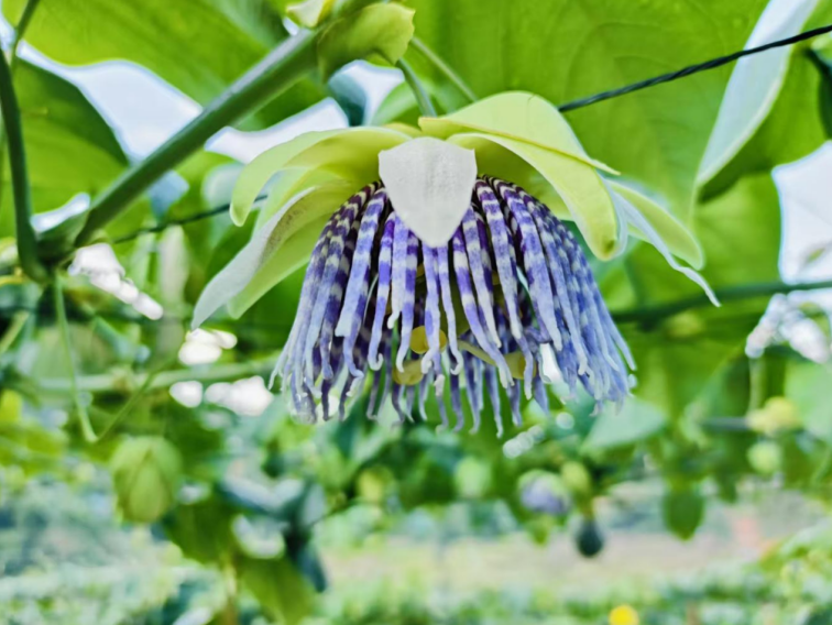 在滇南西双版纳的勐遮山野,昔日闲置的贫瘠山地,如今早已被翠绿藤蔓密密缠绕、爬满篱架。紫蓝白相间的热情果花,恰似碎钻缀满枝头,在风中热烈绽放,悄悄孕育出水果界的“甜宠”——黄金热情果。它开着热烈的花,结着甜润的果,更酿出了村民日子红火的致富甜!