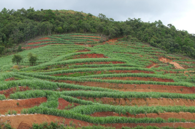 勐满镇山地多、水田少,传统坡地种植水土流失严重、产出效益偏低。为破解这一瓶颈,镇党委坚持党建引领,充分发挥基层党组织战斗堡垒作用,带领群众因地制宜推进坡改梯改造,将零散坡地修整为集中连片的规整台地。改造后的梯地保水保土能力显著增强,土地利用率和机械化作业水平大幅提升,昔日“跑水、跑土、跑肥”的“三跑地”,逐步蜕变为“保水、保土、保肥”的“三保田”。2023—2024榨季,全镇发放改种扩面补贴93.3万元,2024—2025榨季发放“宜计划”补贴105万元,累计完成坡改梯8360亩。南达老寨党支部书记李老二带头响应政策,将150亩坡地改造为梯田,如今年产甘蔗600吨,年纯收入达15万元,成为群众身边的致富引路人。
