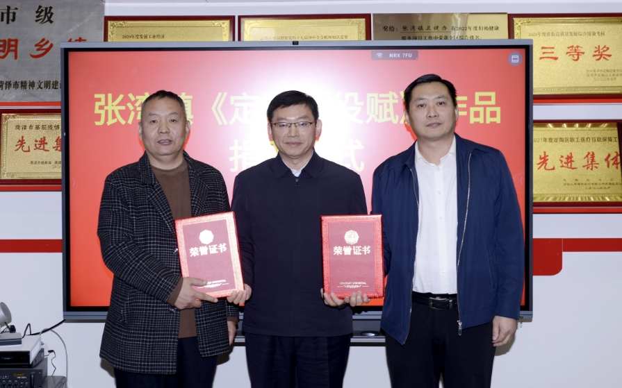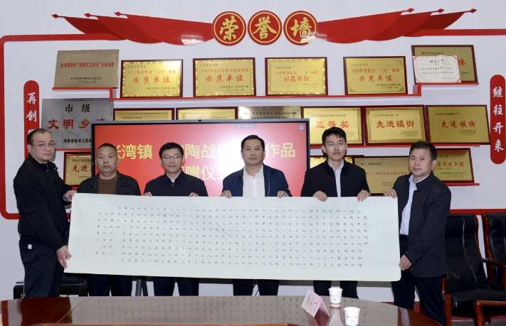 为纪念中国人民抗日战争暨世界反法西斯战争胜利80周年,青年散文辞赋家、中国作家协会会员孙华伟为家乡山东菏泽定陶精心创作了《定陶战役赋》并向定陶战役指挥部旧址所在地张湾镇进行了捐赠。《定陶战役赋》书法作者、孔子第76代后裔、书法家孔令生一同参加捐赠仪式。定陶区张湾镇党委书记李义波参加捐赠仪式并讲话,对两位艺术家的义举表示赞赏,并为他们颁发了作品收藏荣誉证书。