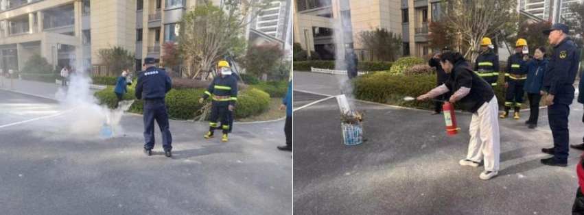 演练现场,消防培训人员聚焦实操实效,向居民及参训人员系统讲解灭火器、消防栓的构造原理与水枪连接规范,通过"理论讲解+实操演示"相结合的方式,普及初期火情扑救技巧、火场科学逃生策略等核心知识。针对干粉灭火器使用这一重点内容,培训人员详细演示"提、拔、握、压"操作要领,组织居民代表、物业员工分组开展油盆灭火实操训练,让大家在亲身实践中熟练掌握灭火技能。同时,演练设置高层救援、消防水带连接铺设等实战场景,充分展现物业消防应急队伍快速响应、高效处置的专业素养。