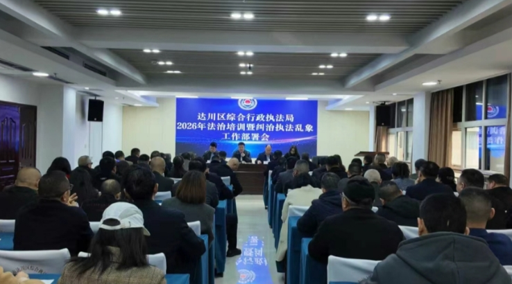 本网四川达州讯(杜靖宇 观理)为纵深推进依法行政,全面纠治基层执法突出问题,持续规范执法权力运行,着力提升执法队伍法治素养与履职能力,全力服务保障法治化营商环境建设,近日,达州市达川区综合行政执法局召开2026年法治培训暨纠治执法乱象工作部署会。局党组书记、局长周跃文主持会议并讲话,在家领导、局机关相关股室、区城管执法大队、区扬尘治理大队执法人员参加会议。
