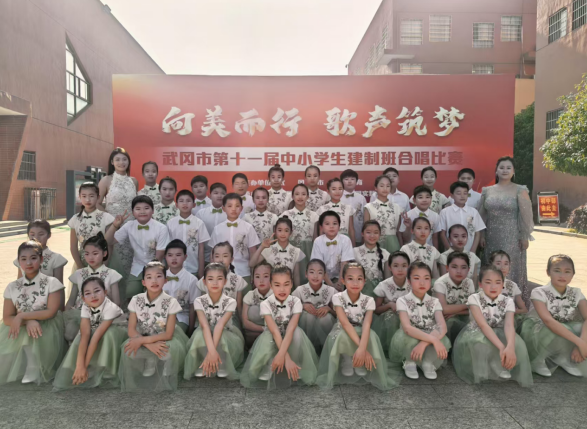 武冈市邓元泰镇中心学校五(1)班合唱队作为参赛队伍之一,在赛前进行了精心的准备和刻苦的训练。比赛中,队员们统一着装,精神饱满,队列整齐。他们以清澈纯净的童声演绎了经典古诗改编歌曲《小池》,生动再现了“泉眼无声惜细流,树阴照水爱晴柔”的诗意画卷; 随后又以欢快活泼的节奏唱响了《踏雪寻梅》,歌声中洋溢着对自然的热爱与探索的乐趣。两支曲目风格各异,但均展现了班级合唱队在音准节奏、情感表达和舞台风貌方面的综合实力。经过激烈角逐,武冈市邓元泰镇中心学校合唱队最终脱颖而出,再次斩获一等奖。这一荣誉不仅是对参赛师生辛勤付出的肯定,也是邓元泰镇中心学校深化教学改革、持续推进素质教育与美育工作的成果体现。