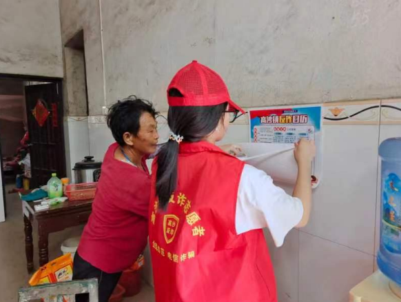 活动中,志愿者们走访每家每户,一对一讲解毒品的危害和禁毒的相关法律条文,分发禁毒宣传单,让村民们认识到禁毒的重要性和违法种植毒品的严重法律后果;再结合真实案例总结避免上当受骗的方法就是牢记“不贪小便宜”、“天上不会掉馅饼”。宣讲后志愿者们给每一户张贴反诈日历,用这种新渠道、新方法,为村民提供生活便利的同时,时刻提醒村民们提高警惕,严防死守禁毒反电诈防线。