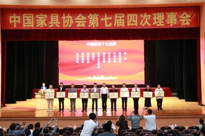近日,以“匠心铸品牌、创新向未来”为主题的中国家具协会第七届四次理事会在广西贵港举行。会议揭晓中家协首次评选的“中国家具十大品牌”名单,圣奥科技、顾家家居、喜临门、美克美家等企业荣耀入选。圣奥副总裁孟勇代表公司上台接受表彰。