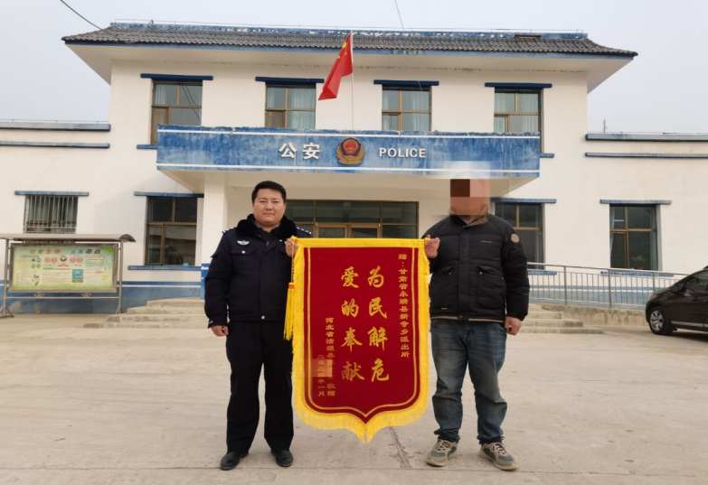 近日,甘肃省永靖县公安局新寺派出所民警收到一面绣有“为民解危·爱的奉献”字样的锦旗。