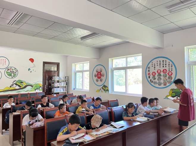 为了解决家长们的这件“忧心事”,村党支部研究决定利用党群服务中心开办“假期课堂”。镇上和村上还为“假期课堂”配备了空调、显示屏、饮水机等设施,让孩子们有一个舒适整洁的学习环境。同时,招募村内优秀大学生志愿者报名参与公益教学,为1-6年级的孩子们讲授语文、数学、英语、美术等多门丰富多彩的课程,解决了家长们的后顾之忧,受到了群众的一致好评。