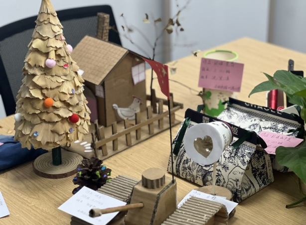 “环保展览” 队员们利用生活中各种各样的废旧物品,将它们改造成一件件生动活泼的创意作品。有的还用废弃的矿泉水瓶、洗衣液瓶等塑料制品,充分发挥想象,创作出了极具新意的小作品,向大家宣传2024年世界地球日的主题“全球战塑”的意义。
