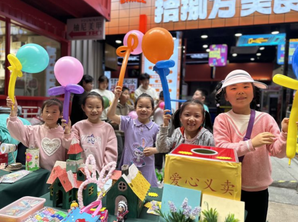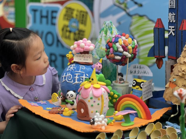 4月22日为第55个“世界地球日”。21日下午,合肥市滁州路小学联合国潮中市街举办“环保市集 旧物循环”主题活动。活动内容有“环保展览”“环保涂鸦”“旧物市集”等。