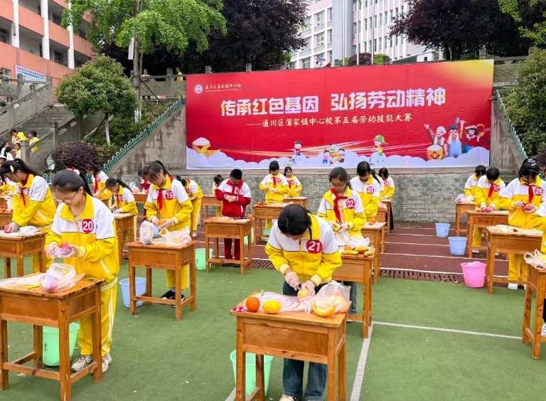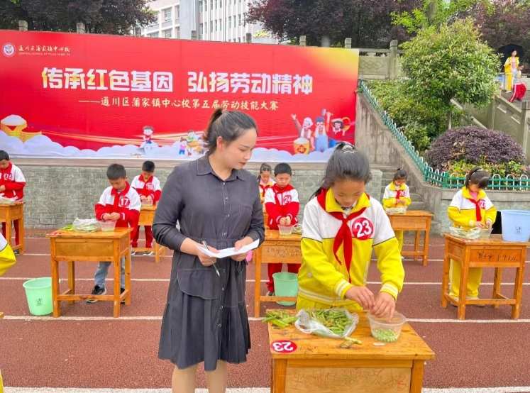4月24日上午,四川达州市通川区蒲家镇中心校开展了以“传承红色基因 弘扬劳动精神”为主题的劳动技能大赛。