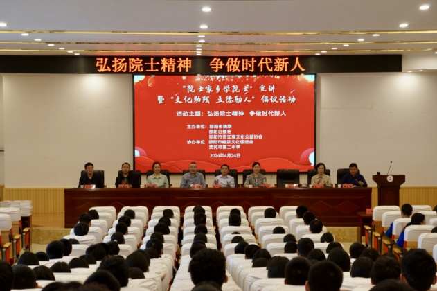 本网湖南讯(洪永祥 殷丽焱 周香英 吕剑昱)4月24日下午2点,“院士家乡学院士”宣讲活动暨“文化助残,立德励人”倡议活动在湖南省武冈市第二中学举行,该校高一年级300余名学生参加讲座。本次活动由该校党总支副书记于建成主持。