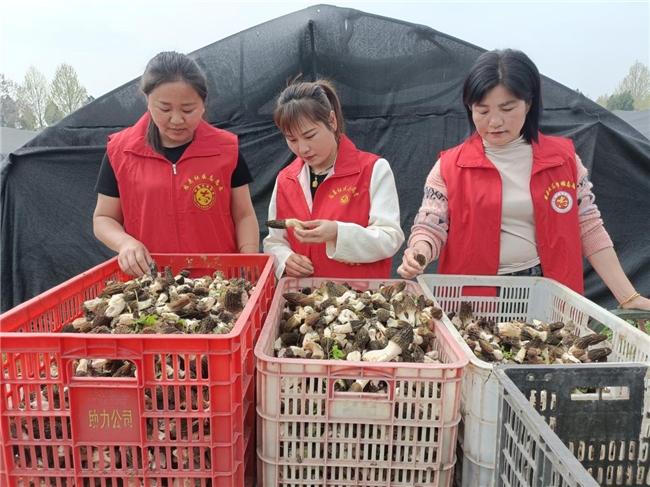 近日,走进安徽省蒙城县庄周街道后娄社区农兴种植专业合作社,党员志愿者正在帮助农户采收最后一茬羊肚菌,现场一派繁忙的景象。近年来,蒙城县庄周街道坚持党建引领,在推进农业产业结构调整过程中,以市场为导向,以强村富民为目标,因地制宜发展特色种植产业,并形成集种植、加工、销售于一体的产业链,有效带动农民增收,助力乡村振兴。(安徽蒙城庄周街道后娄社区 何荣)