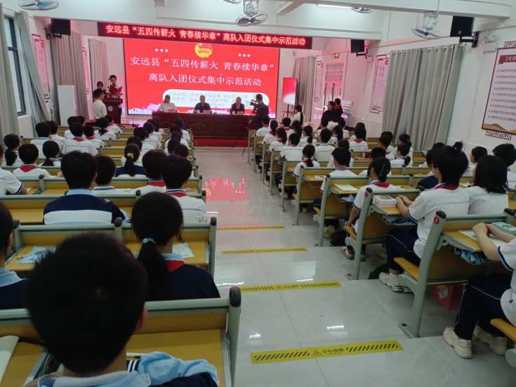 本网江西赣州讯(刘毅)为传承和弘扬“五四”精神,切实培养团员的光荣感和使命感,为团组织注入新鲜血液,4月30日上午,江西省赣州市安远县“五四传薪火 青春续华章”离队入团仪式集中示范活动在安远县东江实验学校举行。共青团县委书记唐鹏同志、团县委挂职副书记潘丽娟同志,安远县东江实验学校党总支书记卢红胜同志出席活动。