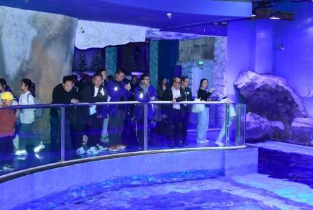 海兽探秘馆里,同学们全方位地观察了海兽在沙滩的生活状态和在水中游弋的状态,尽情感受着大自然的真实与美好。南极企鹅馆真实还原极地海洋世界,采用通体亚克力玻璃材质打造的全球最大“企鹅超级碗”,全景呈现企鹅的自然生活形态。冰山北极馆则向同学们展示了海狮、白鲸、北极熊、北极狼、北极狐、髯海豹、斑海豹的真实生活。