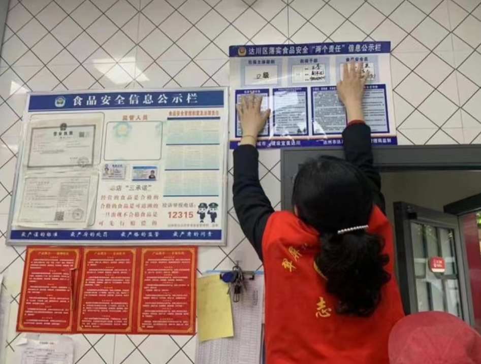 网格员入户张贴落实食品安全“两个责任”信息公示栏