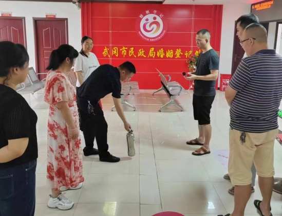 本网湖南讯(通讯员 许育山 潘久雄)今年6月是第23个全国“安全生产月”。为进一步提高民政机构在遇到重大突发事件或自然灾害时的应对能力,培养干部职工自救、互救能力,6月18日,湖南省武冈市救助管理站与婚姻登记处联合开展了消防安全演练,局分管领导及婚姻登记处、救助站的负责同志及消防安全工作人员等20余人参加。