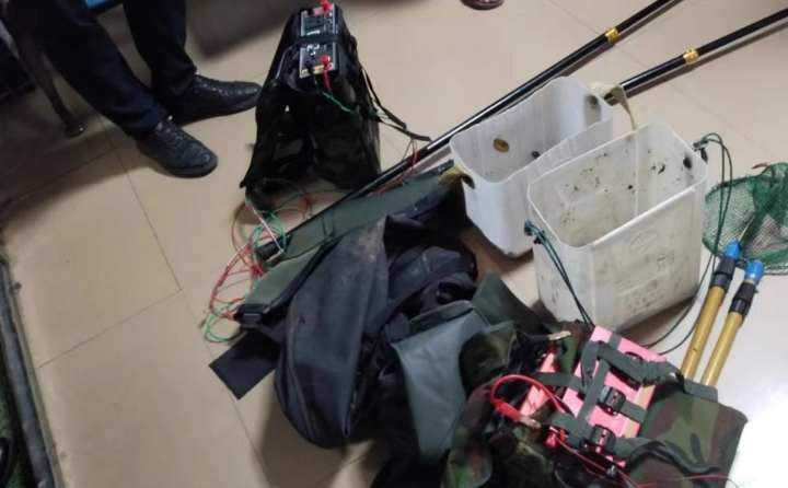 联合执法行动中,8名执法人员在辖区内赧水河天心桥段流域布控、巡逻、排查、蹲守,于凌晨3点找到正在实施电鱼的邓某和阳某2人,执法人员缴获了违规改装电鱼包2个和电鱼网4个,将2人带回镇派出所进行立案调查,并对两名违法人员做出相应行政处罚,有力打击、震慑了非法电鱼捕捞违法行为。