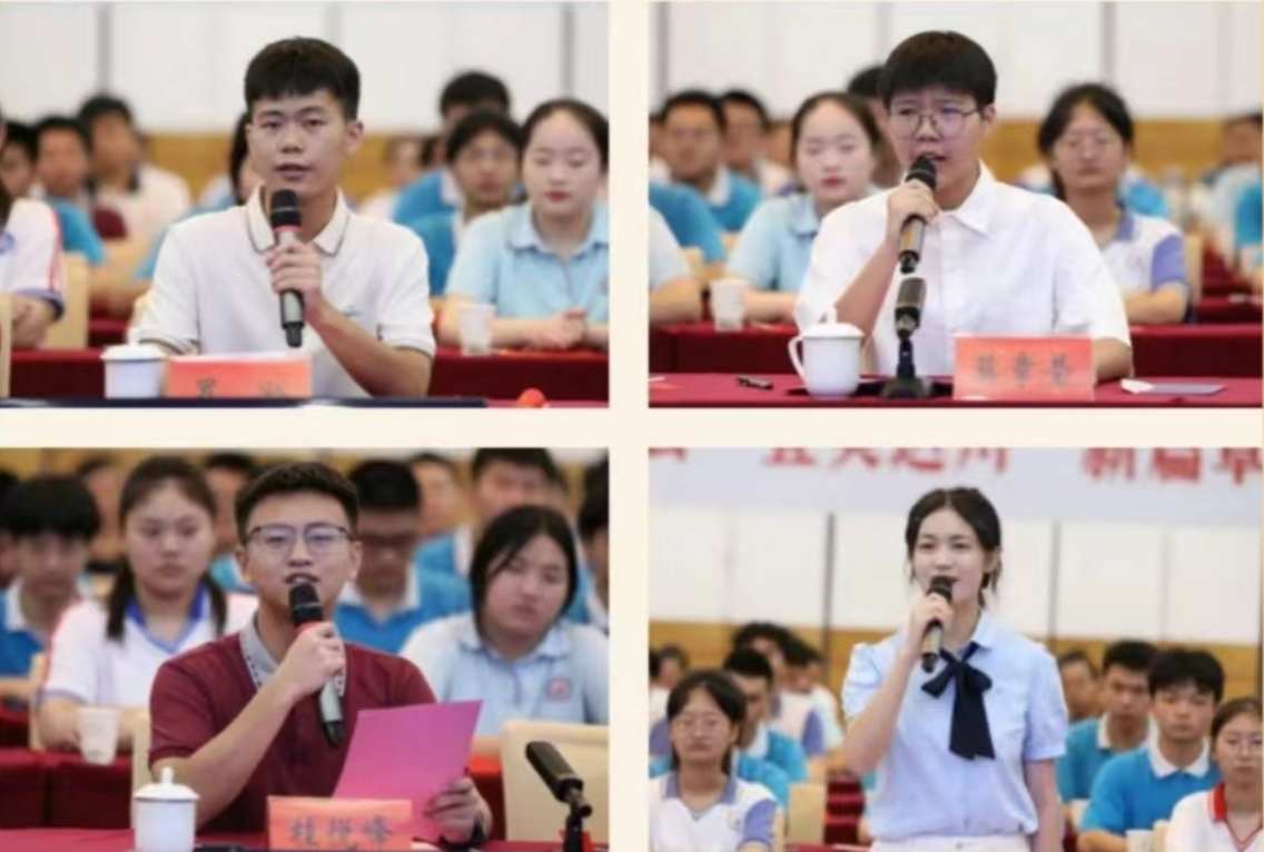 会议通报了2024年全区高考情况,宣读了《关于成立达州中学教育发展专项基金的通知》。学生代表罗淞、莫章莹、桂悦峰、廖瑜、家长代表、教师代表以及学校代表分别作了交流发言。