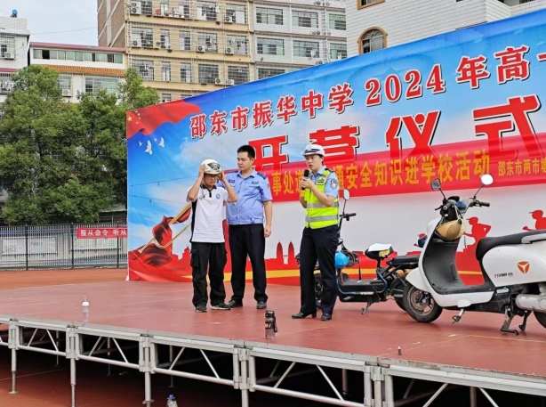 本网湖南讯(通讯员 李科跃)为加强中学生道路交通安全意识,降低道路交通事故所造成的生命财产风险,9月19日,湖南省邵东市两市塘街道联合邵东市交警大队,在邵东市振华中学开展道路交通安全宣传活动。