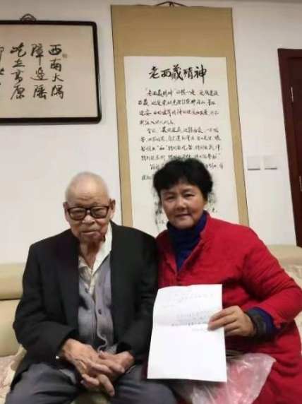2020年12月,二炮原副政委、中将、北京八路军山东抗日根据地研究会顾问阴法唐(左1)给郑天民的女儿郑渝跃题字并合影
