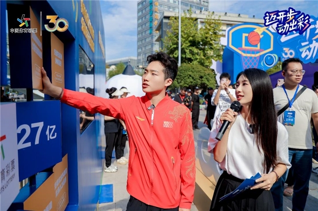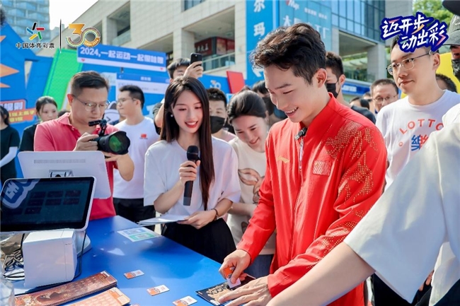 体验完丰富多彩的运动游戏,王宗源特意来到体彩品牌展示区,大家跟随着王宗源的脚步,一路观看回顾体彩公益大事记,直观地感受到体彩全国统一发行30年以来的发展历程和责任公益公信建设成果。