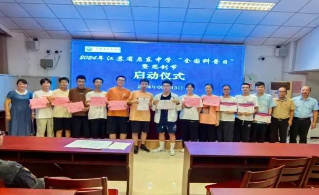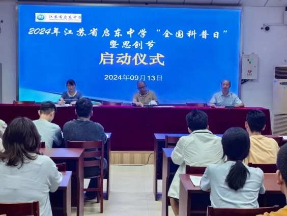 本网江苏讯(通讯员 文云全 平源 )2024 年 9 月 13 日晚,江苏省启东中学 “全国科普日” 暨思创节启动仪式于行政楼四楼会议室隆重举行。校党委副书记陈宏杰、副校长殷宝霞亲临现场,高一、高二年级各班班长以及荣获 2023 - 2024 学年度 “科创之星” 的学生代表共同参会。此次活动由文云全副主任主持。