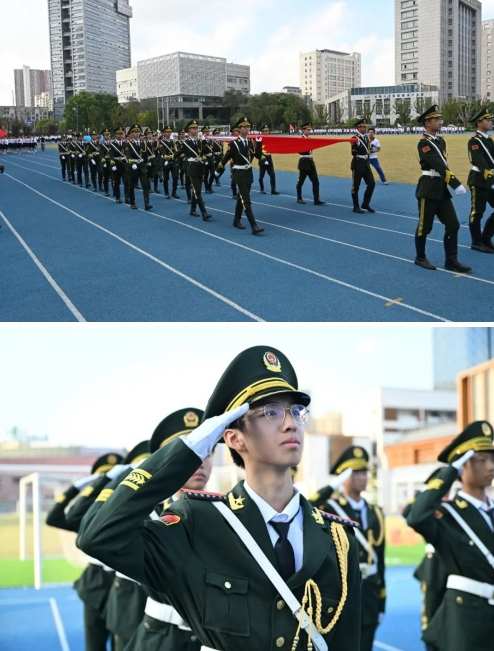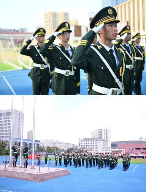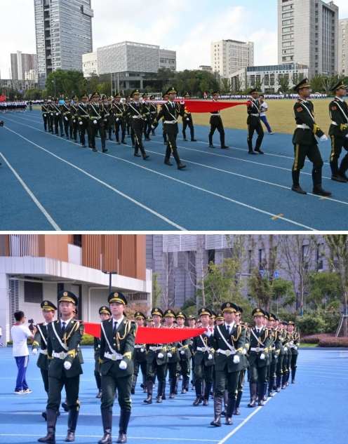 首先出场的是东林中学国旗护卫队的所有队员。他们迈着铿锵有力的步伐,以昂扬的姿态护送鲜艳的五星红旗进场,用自己的汗水和努力守护这最美中国红。全场师生行注目礼,将自己对祖国的祝福融入冉冉升起的国旗中,这当中融入了少年勇于登攀的凌云壮志,更融入了东林师生“强国有我”的无悔初心。
