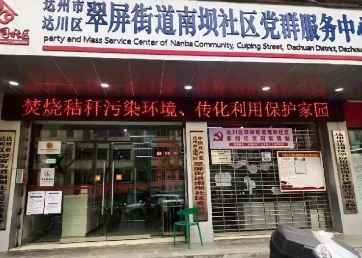 南坝社区电子屏播放秸秆禁烧宣传标语